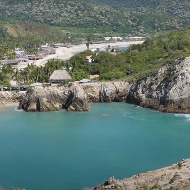 Visitors are greeted by striking turquoise-blue water and soft sand, making Maruata one of the most visually captivating beaches in Michoacán. It comprises three separate beach arcs (eastern, central, and western), each with different characteristics — from long crescent sand stretches and calm waters to areas with stronger surf.